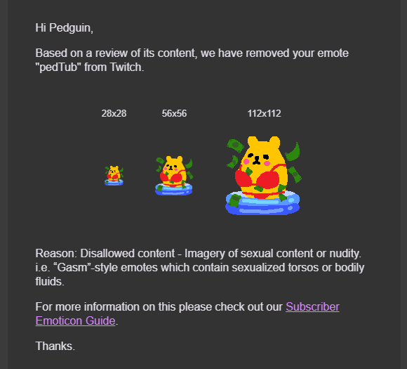 Twitch Removes Winnie The Pooh In Bikini Emote For Being Sexual Streamer Claims Ginx Esports Tv from www.ginx.tv While twitch offers emote options to affiliates and partners, only partners in good standing will have their emote automatically approved. How long does it take to get an emote approved on twitch? How long does it take for emotes to get approved? If there have been several submissions at once or if you submit it shortly before a holiday season, it could take a week or longer. Emotes are a great way to customize your channel and reward your subscribers. After months of working at streaming, you finally achieved 50 followers and 3 average view. Has streamed at least 60 days as an affiliate over a rolling 2 year period. Twitch emotes are usually approved within 48 hours, but can take much longer.